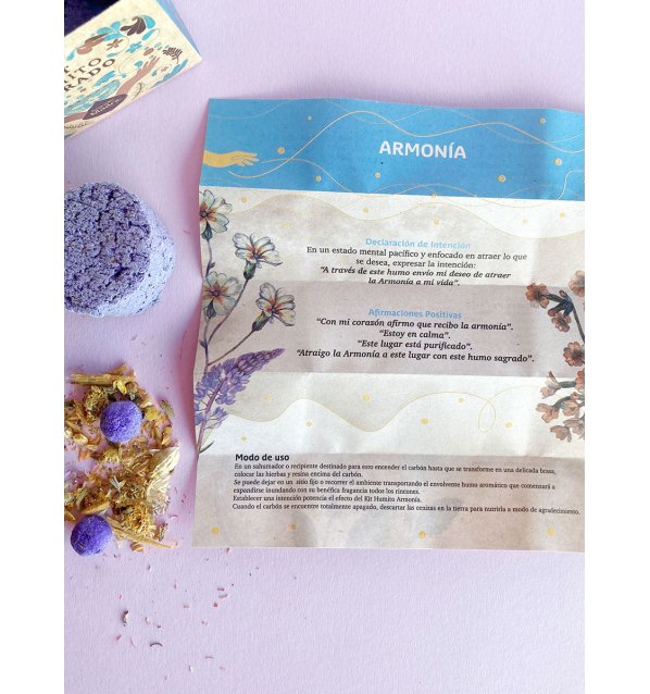 Humito sagrado Armonía de resinas ecológicas. Con Lavanda que renueva, Palo Santo que limpia y recarga energéticamente, Manzanilla que calma, y Caléndula un toque de optimismo.