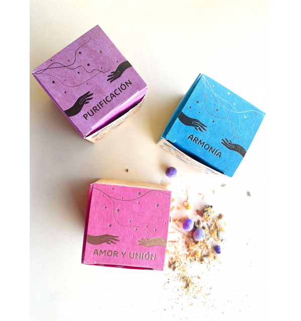 Humito sagrado Armonía, Purificación y Amor de resinas ecológicas, pack de tres.