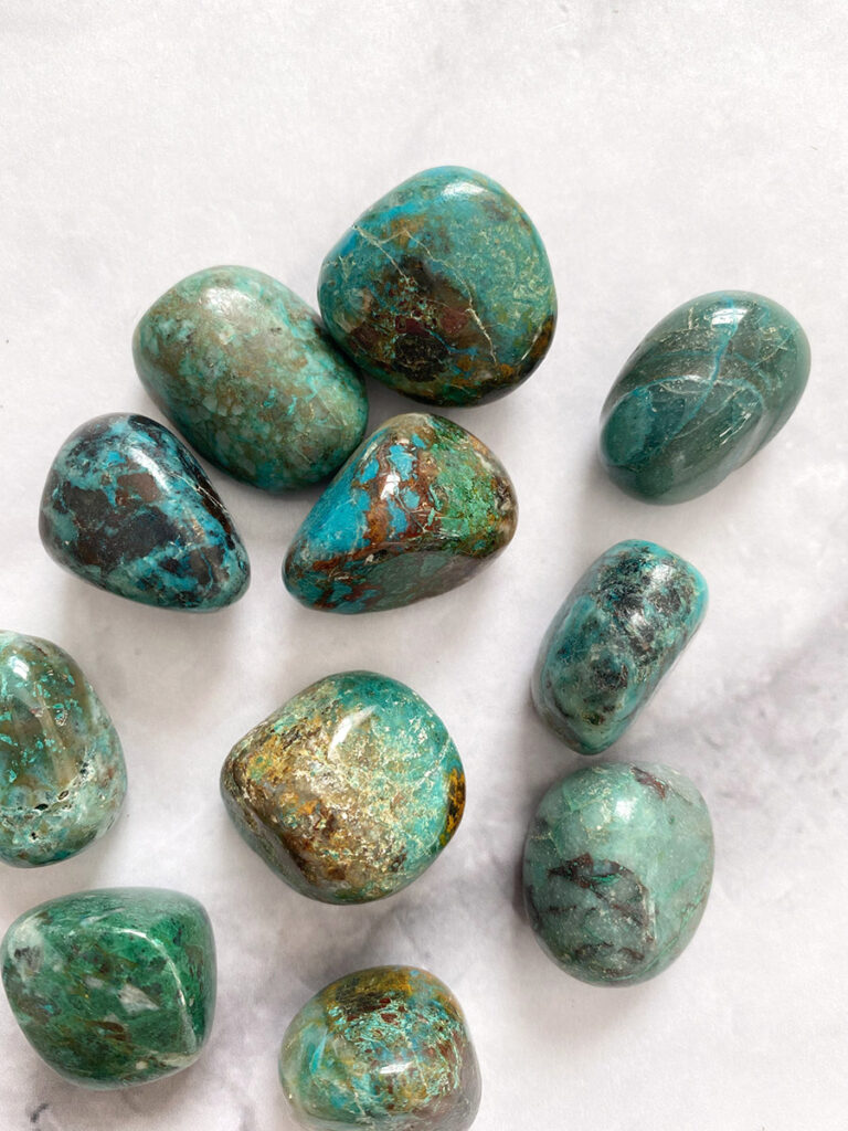 La energía de la Crisocola resuena especialmente con los chakras corazón (Anahata) y garganta (Vishuddha). Esto la convierte en una gema ideal para quienes desean: