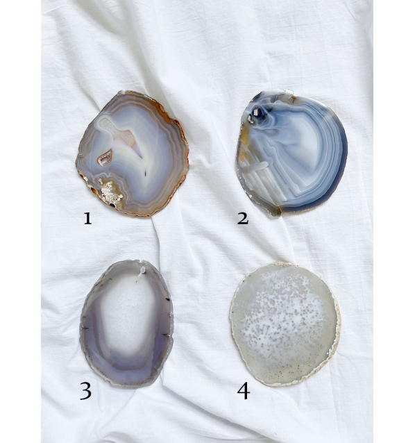 Diámetro de 10cm aprox. Todas las piezas son únicas. Los colores de las Ágatas son naturales.