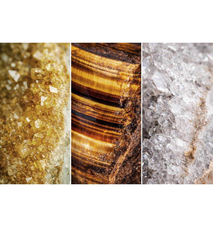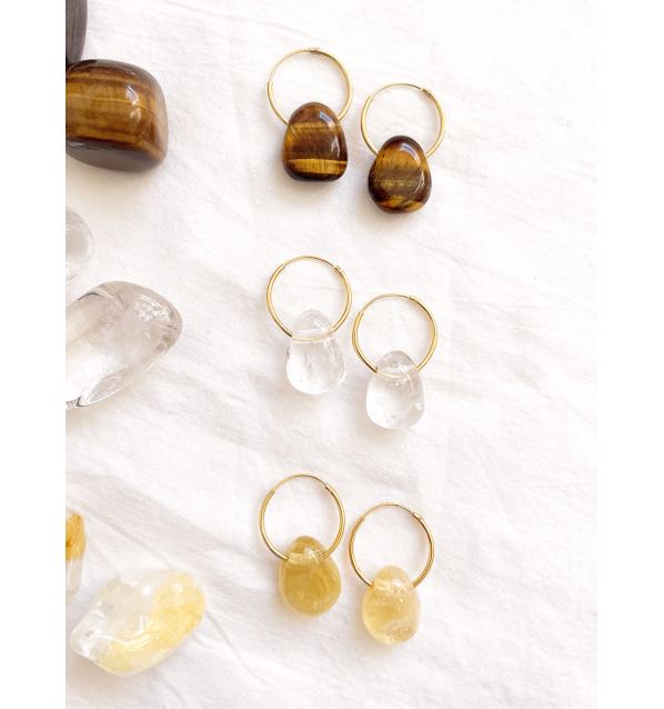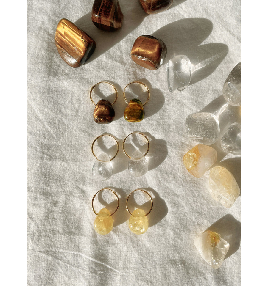 Manipura es una colección solar y vibrante. Reúne la luz expansiva del Citrino, la firmeza protectora del Ojo de Tigre, y la pureza amplificadora y armonizadora del Cuarzo cristal.