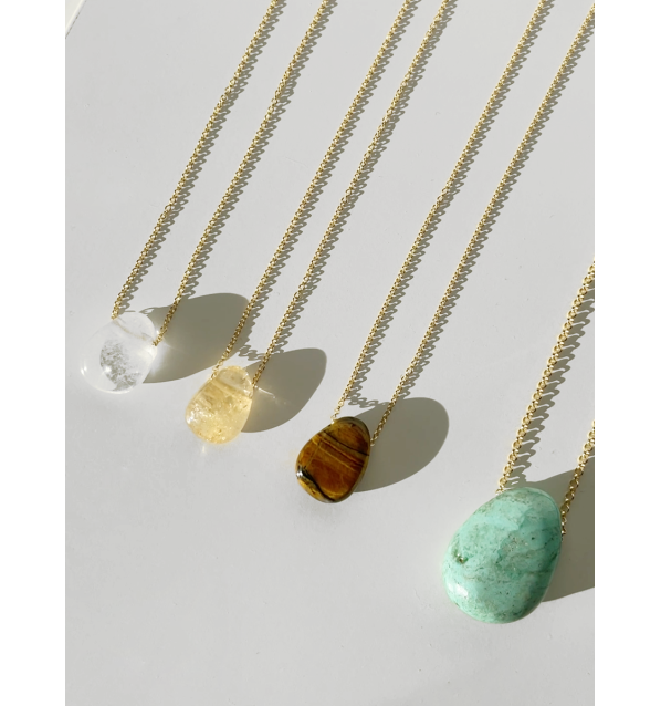 Cadena larga y de anilla grande de 70cm, con Gema tallada en pétalo grueso de 30mm aprox.