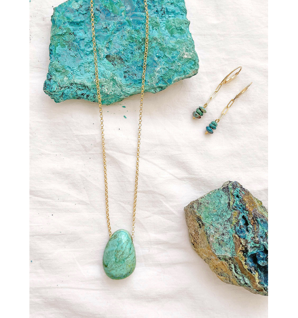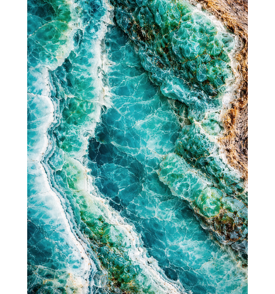 La Crisocola despliega una belleza serena en tonos que recuerdan al agua, la tierra y la profundidad de lo esencial. A la inmensidad del océano, a su misterio y su infinita hondura.